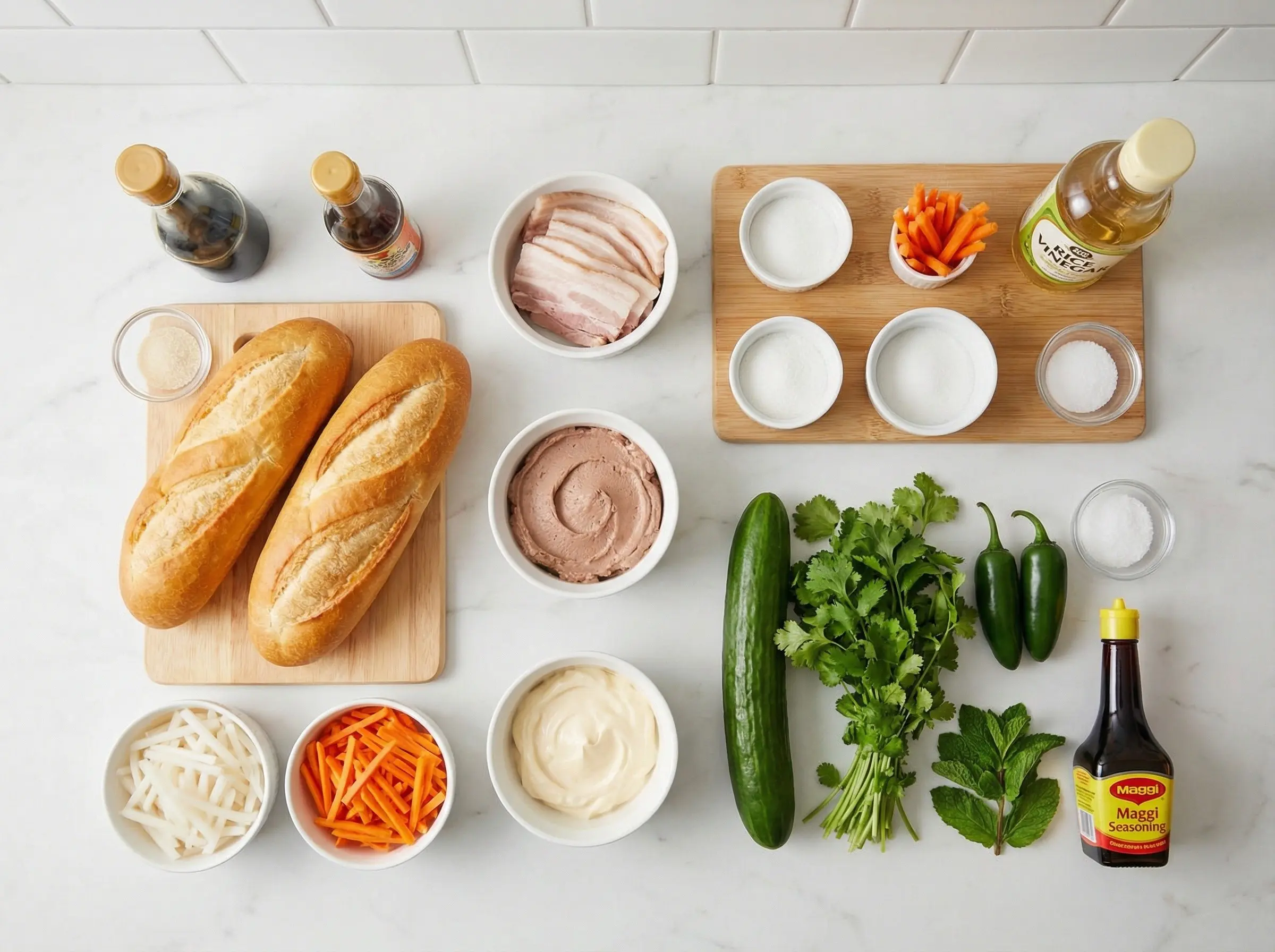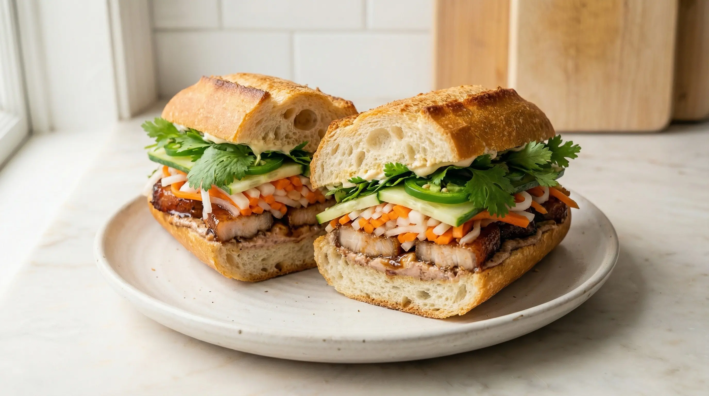 Learn how to make authentic banh mi, the iconic Vietnamese sandwich with crispy baguette, savory meat, pickled vegetables, and fresh herbs. This perfect fusion of French and Vietnamese flavors is irresistible!