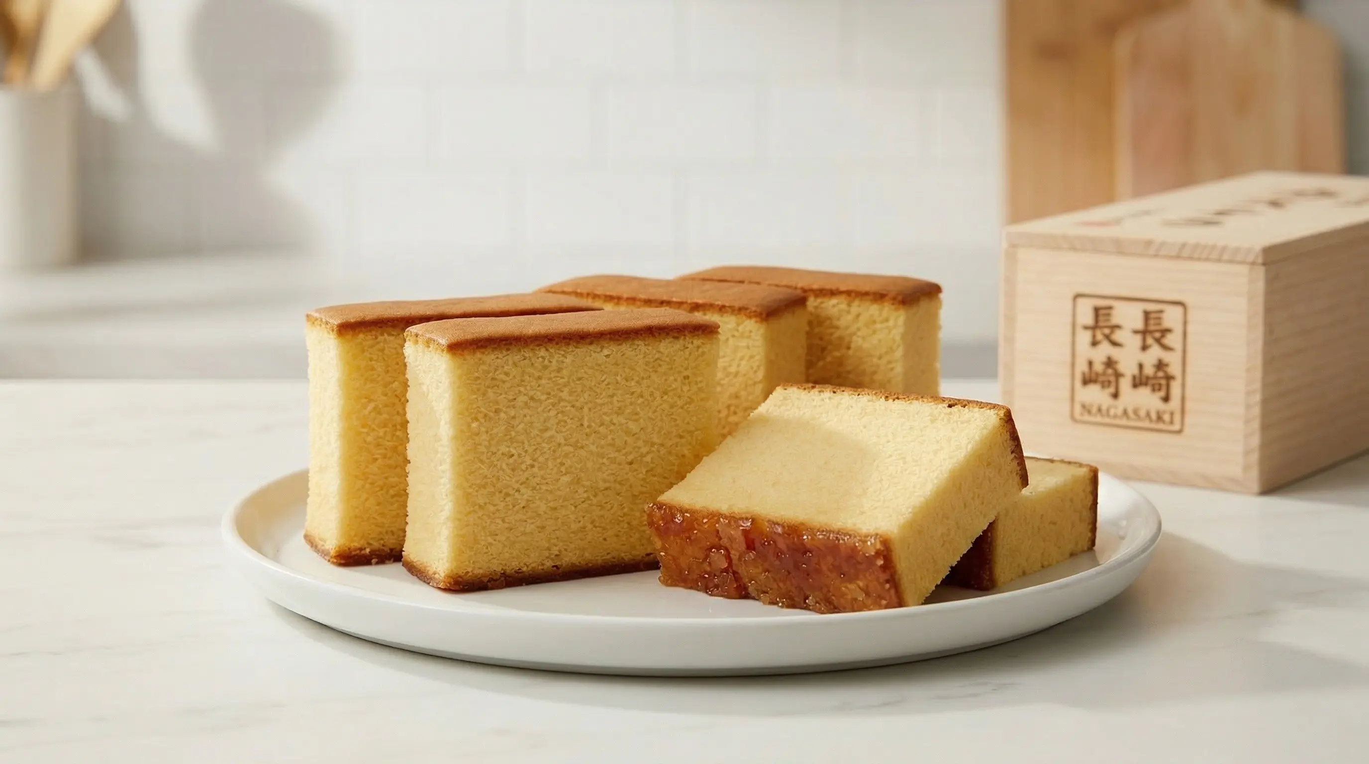 Castella, known as kasutera in Japanese, is a honey sponge cake with a fascinating history that bridges East and West. The cake arrived in Japan in the 16th century, brought by Portuguese missionaries and merchants who landed in Nagasaki during Japan's brief period of openness to foreign trade. The name derives from "Pao de Castela," meaning bread from Castile (a kingdom in Spain), though the cake itself was a Portuguese creation similar to pao-de-lo. When Japan closed its borders during the Edo period (1603-1868), Nagasaki remained the only port open to limited foreign trade, and the local confectioners continued refining the Portuguese recipe, transforming it over centuries into something distinctly Japanese. What began as a foreign curiosity became one of Japan's most treasured confections. Nagasaki bakers spent generations perfecting the cake, developing the characteristic fine, even crumb, the moist honey-scented interior, and the thin layer of caramelized sugar that forms on the bottom during baking. The most famous castella bakery, Fukusaya, has been making the cake since 1624 and guards its recipe and technique closely. Traditional castella is baked in large wooden frames and aged for a day or two to allow the moisture to distribute evenly, resulting in a cake of remarkable uniformity and delicacy. Today, Nagasaki castella is considered a premium gift, purchased by tourists and shipped throughout Japan as an elegant souvenir. What makes castella so extraordinary is its perfect simplicity and the meticulous technique required to achieve it. The cake contains only four main ingredients - eggs, sugar, flour, and mizuame (a Japanese starch syrup similar to honey) - yet produces a texture unlike any Western sponge cake. The crumb is incredibly fine and even, almost velvety, with no air pockets or irregularities. The cake is moist but not heavy, sweet but not cloying, with a honey fragrance that perfumes every bite. The signature feature is the thin, sticky layer of caramelized sugar on the bottom, formed when sugar settles during baking. Sliced into elegant rectangles and often presented in wooden boxes, castella embodies the Japanese pursuit of perfection through simplicity - a foreign recipe transformed over four centuries into an edible art form.