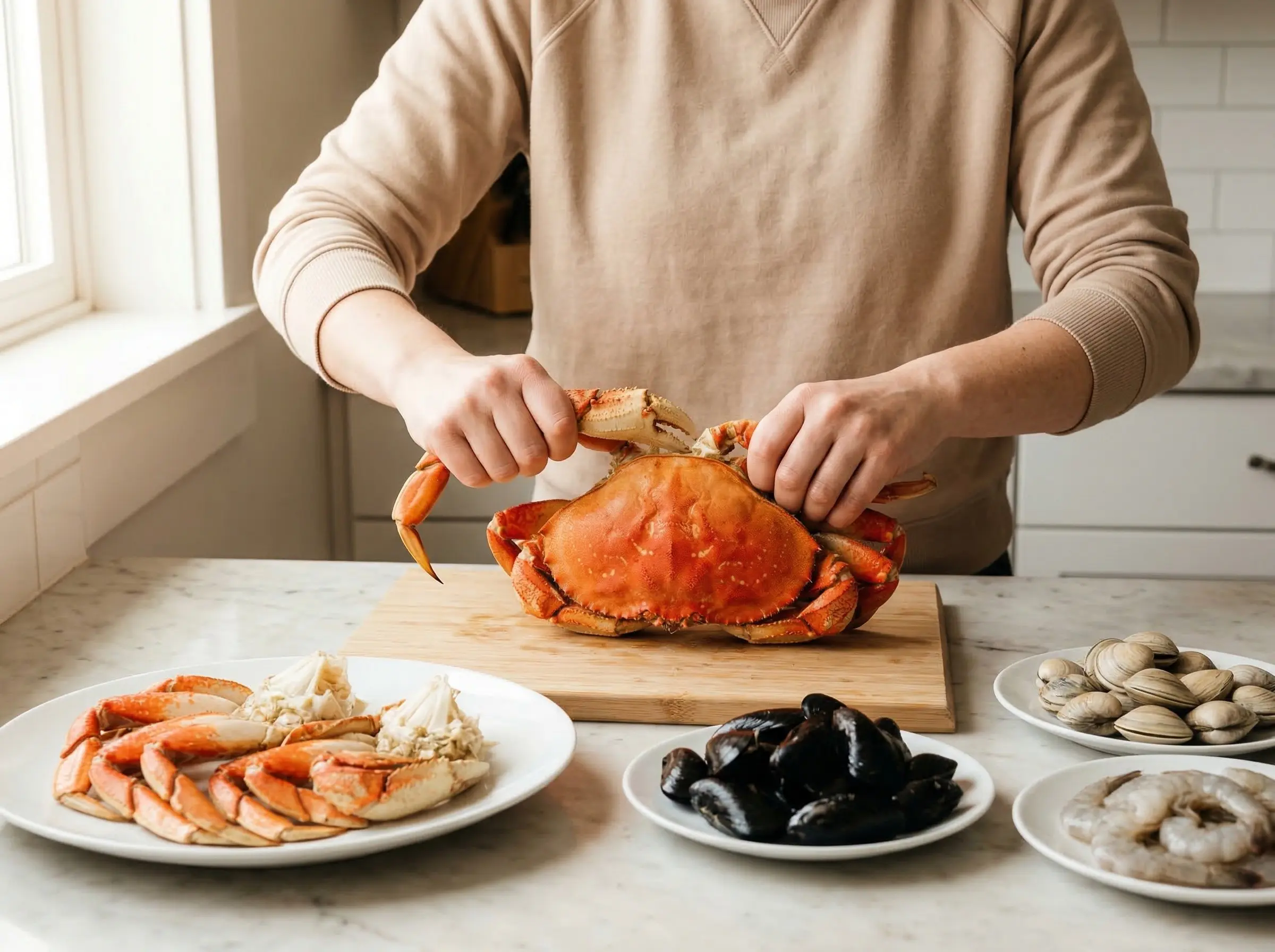 Add the shellfish in stages. Nestle the crab pieces into the simmering broth, pushing them down to submerge. Cover and cook for 3-4 minutes to heat the crab and allow its flavor to infuse the broth. Add the clams, hinge-side down, and cover. Cook for 5 minutes. Add the mussels, cover again, and cook for another 4-5 minutes until the clams and mussels have opened. Discard any that remain closed after cooking.
