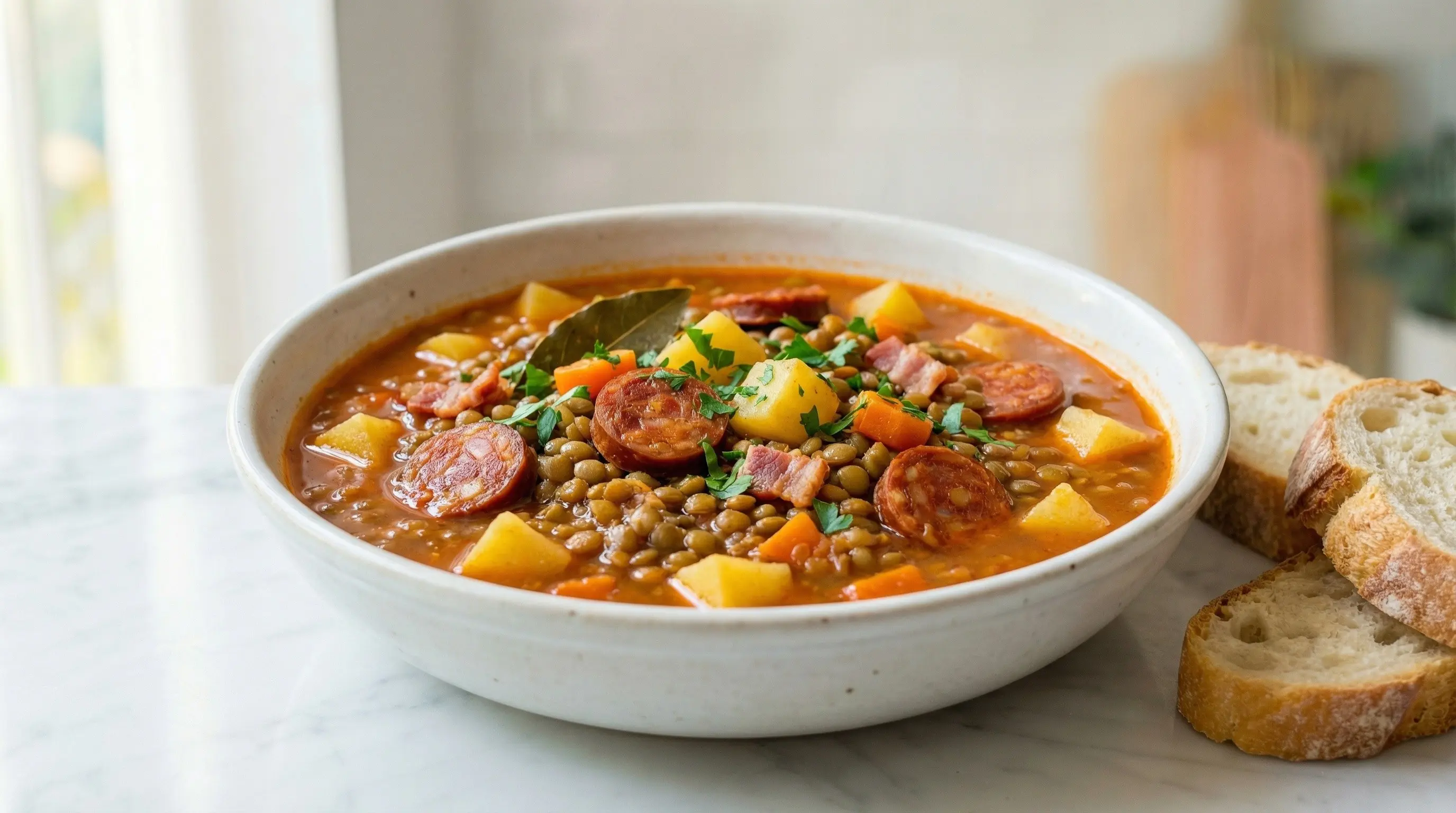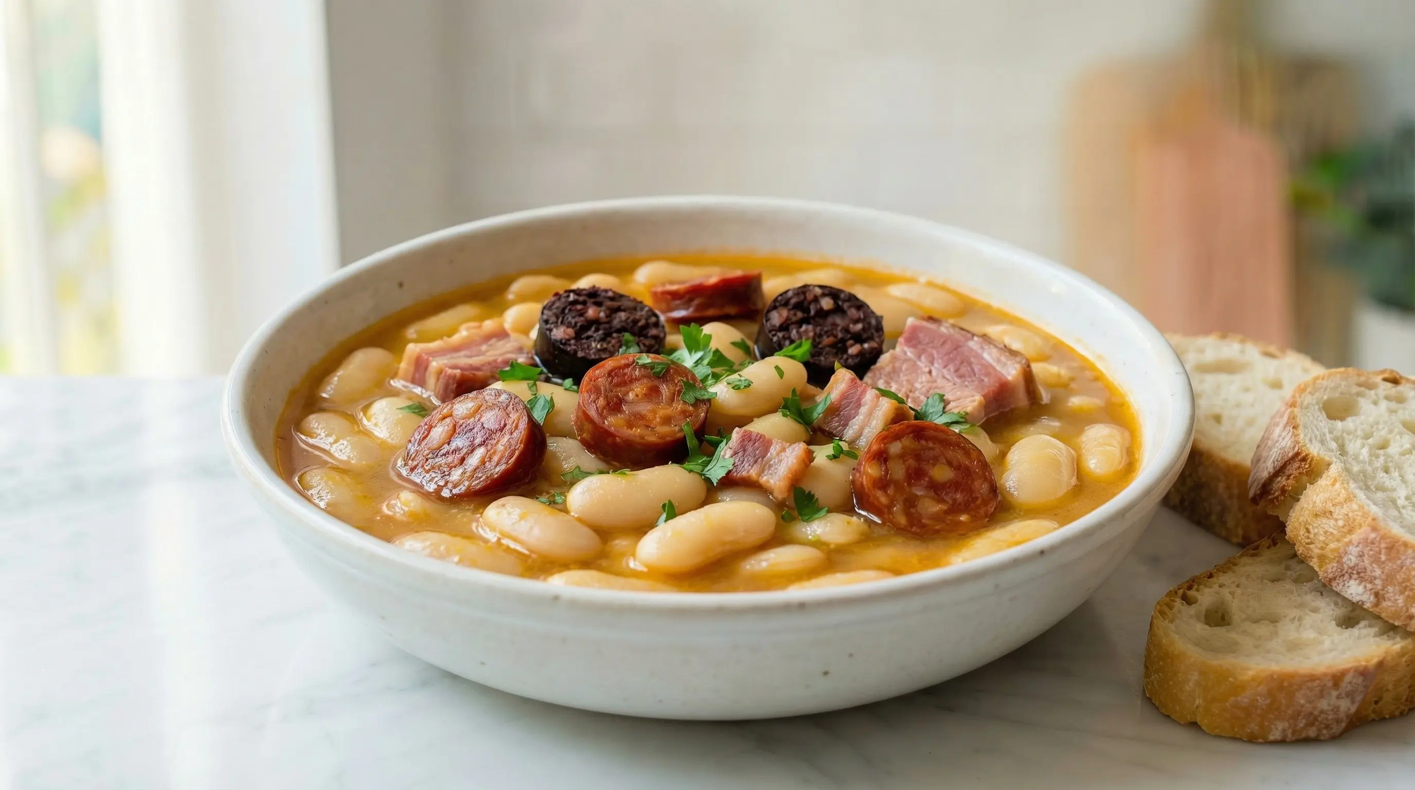 After about 2 hours, the beans should be completely tender and beginning to break down, creating a thick, creamy sauce. The meats should be falling-off-the-bone tender. Remove the ham hock and shred the meat, discarding the skin and bones, then return the shredded meat to the pot. For a creamier consistency (traditional style), remove about 1 cup of beans and mash them with a fork or blend briefly, then stir them back into the pot. This thickens the broth into a rich, velvety sauce. Taste and add salt if needed - start with a little as the meats have contributed significant saltiness.