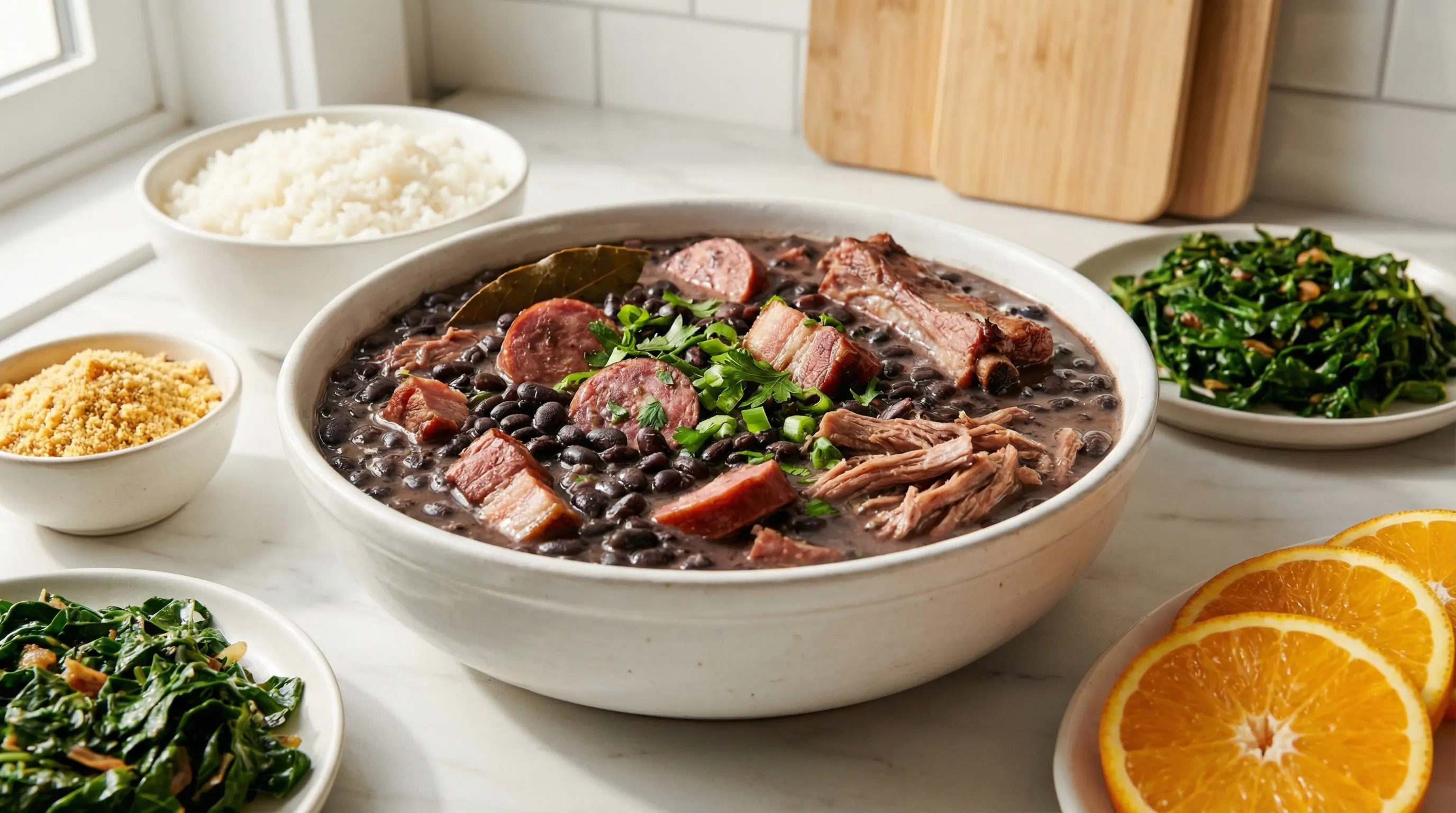 Feijoada is the undisputed national dish of Brazil, a magnificent slow-cooked stew of black beans and an array of smoked, cured, and fresh pork cuts that represents the country's culinary soul. The name comes from "feijão," the Portuguese word for beans, and the dish has deep roots in Brazil's complex colonial history. While similar bean and pork stews exist throughout the Portuguese-speaking world - including Portugal itself, where white beans and lighter meats are used - Brazilian feijoada evolved into something uniquely its own, distinguished by its use of black beans and the particular combination of cured meats that give it an intensely smoky, rich character. The origins of feijoada are the subject of much debate and mythology. A popular but likely apocryphal story claims it was invented by enslaved Africans who created the dish from the scraps and lesser cuts of pork that plantation owners discarded - ears, tails, and feet. While this narrative resonates emotionally, historians note that these cuts were actually prized in Portuguese cuisine and would not have been discarded. More likely, feijoada evolved from the Portuguese tradition of cozido (boiled dinner) combined with African cooking techniques and Brazilian ingredients. What is certain is that by the 19th century, feijoada had become firmly established as a beloved dish across all social classes in Brazil, from humble homes to elegant restaurants. Today, feijoada occupies a special place in Brazilian culture as a celebration dish, traditionally served on Wednesdays and Saturdays when restaurants across the country offer feijoada completa - the full spread. A proper feijoada is never just a bowl of stew; it is an event. The rich, dark beans are accompanied by fluffy white rice, farofa (toasted cassava flour), couve (sautéed collard greens), orange slices to cut the richness, and crispy torresmo (pork cracklings). The combination of textures and flavors - the creamy beans, smoky meat, crunchy farofa, bitter greens, and bright citrus - creates a meal that is both indulgent and surprisingly balanced. Feijoada brings people together, meant to be shared with family and friends over long, leisurely meals accompanied by caipirinhas and good conversation.