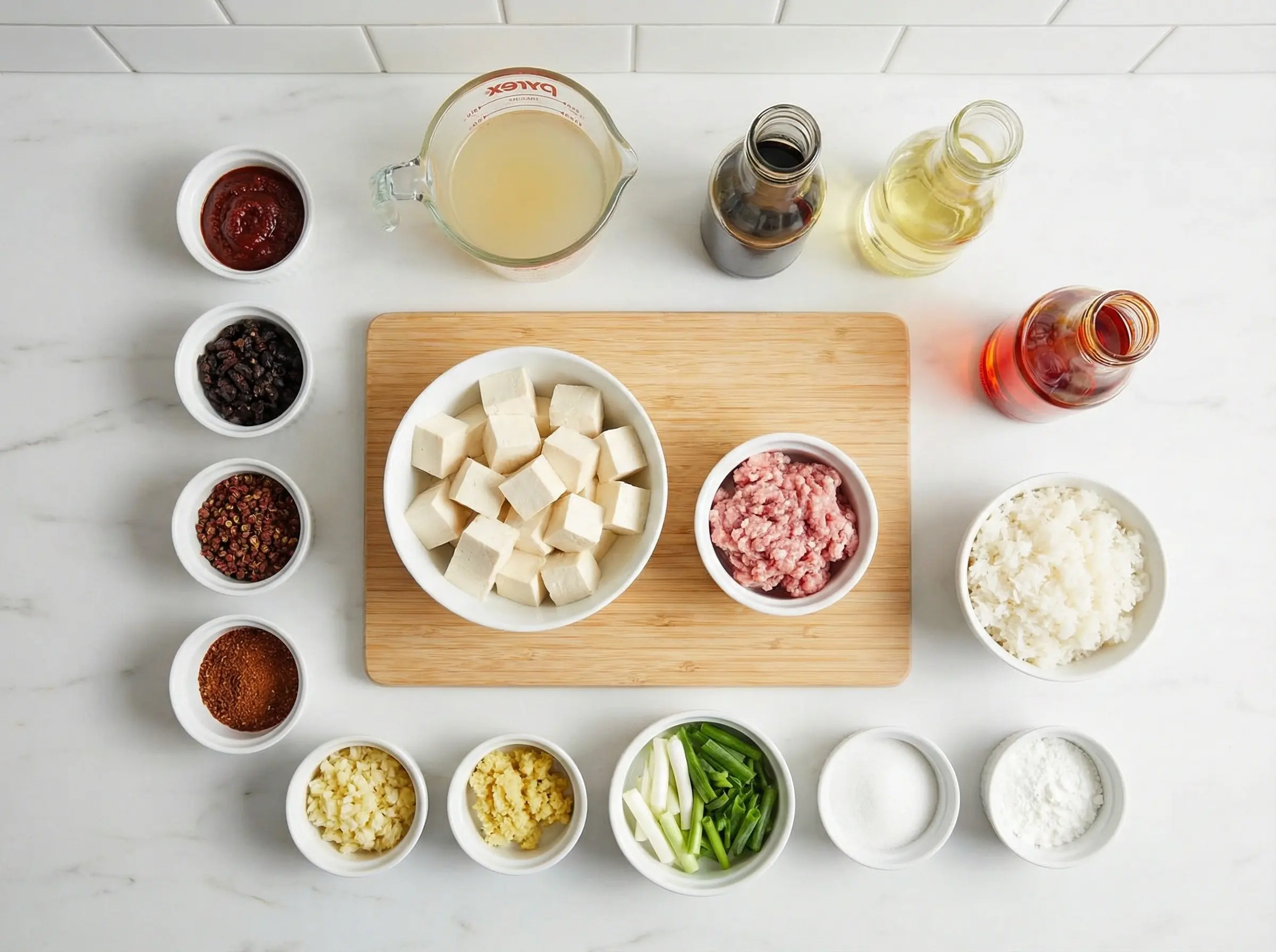 Mapo tofu is one of the most famous dishes in Sichuan cuisine and one of the most beloved tofu preparations in the world. The dish was created in 1862 in Chengdu, the capital of Sichuan Province, by a woman named Chen whose face was marked by pockmarks - "mapo" literally means "pockmarked old woman" in Chinese. Chen ran a small restaurant near the Wanfu Bridge that was frequented by laborers and oil merchants. She created this hearty, inexpensive dish of tofu cooked with minced beef (later pork became more common) in a spicy, oily sauce that could be eaten with large quantities of rice. The dish was so popular that her restaurant became famous, and the recipe spread throughout China and eventually the world. What makes mapo tofu distinctive is its embodiment of the Sichuan flavor philosophy called "mala" - a combination of "ma" (numbing) from Sichuan peppercorns and "la" (spicy) from chili peppers. This numbing-spicy sensation is unique to Sichuan cuisine and creates an almost addictive quality that keeps you reaching for more despite the heat. The dish also exemplifies the Sichuan concept of layered flavors: the doubanjiang (fermented chili bean paste) provides deep, fermented spiciness, the douchi (fermented black beans) add umami complexity, the Sichuan peppercorns contribute their famous tingling numbness, and the final drizzle of chili oil adds glossy heat. All of these bold flavors are balanced against the mild, silky tofu. What makes mapo tofu so extraordinary is the contrast between the gentle tofu and the aggressive sauce. The tofu should be silky soft, almost custard-like, providing a cooling counterpoint to the fiery sauce that surrounds it. The ground pork adds savory richness and textural interest, while the sauce itself is a complex symphony of heat, numbness, fermented depth, and aromatic garlic and ginger. When properly made, mapo tofu should have what the Chinese call "qi wei" or seven flavors: spicy, numbing, hot, fresh, tender, soft, and aromatic. Served over steaming white rice that absorbs the intensely flavorful sauce, mapo tofu is comfort food for spice lovers - humble ingredients transformed into something transcendent through the genius of Sichuan seasoning.