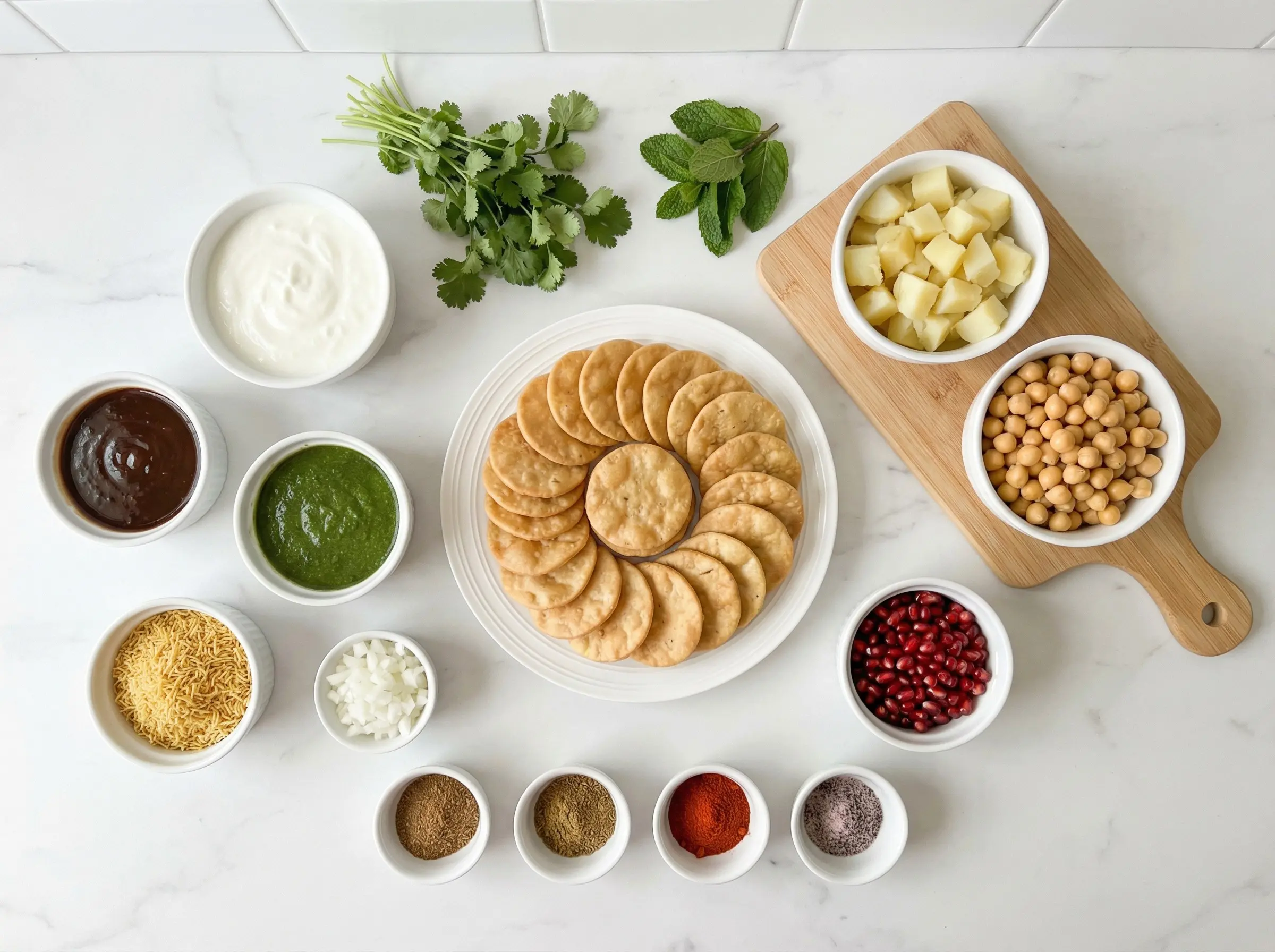 Learn how to make authentic papdi chaat, a beloved Indian street food with crispy crackers, potatoes, chickpeas, yogurt, and tangy chutneys. This explosion of flavors and textures is irresistible!