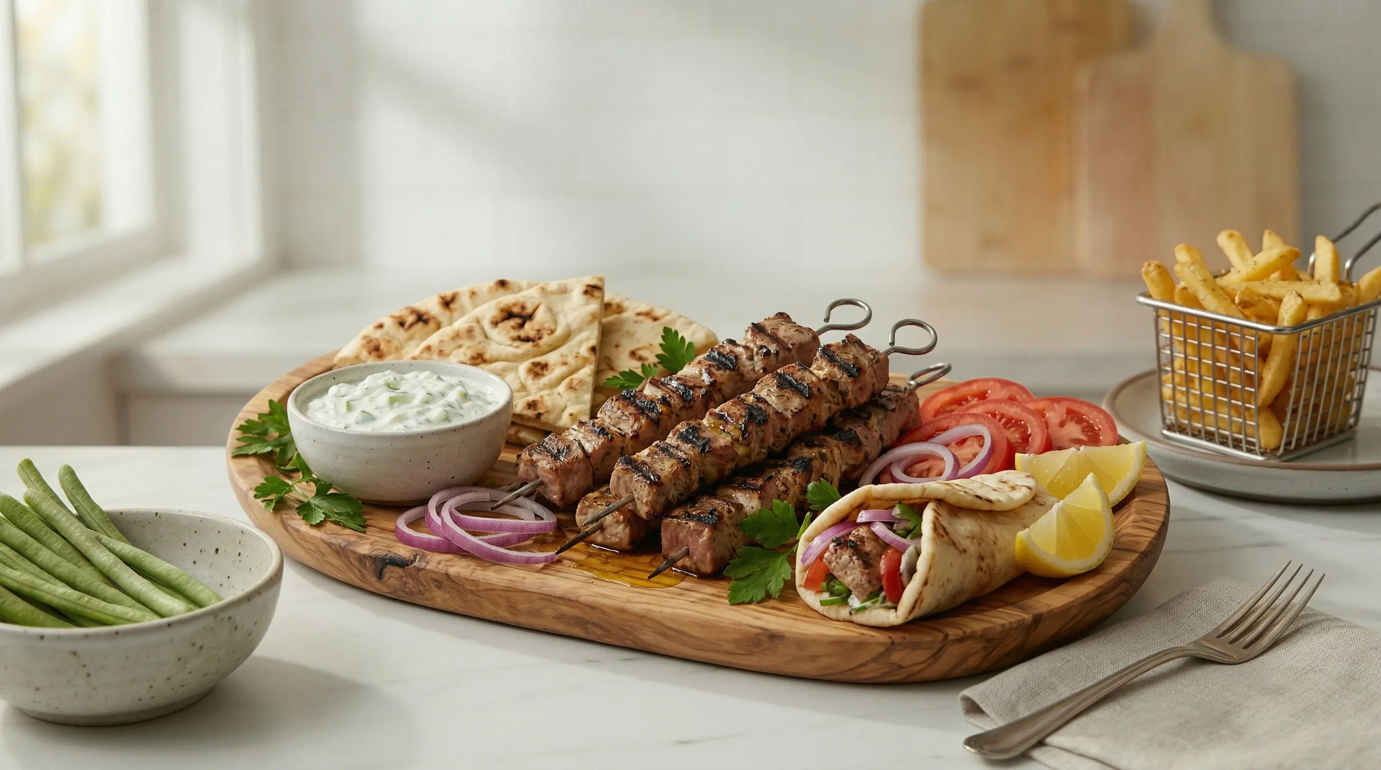 Souvlaki is Greece's most iconic street food, small pieces of meat grilled on skewers and served with pita bread, tzatziki, tomatoes, onions, and sometimes french fries - a simple yet perfect combination that has fueled Greeks for generations. The name comes from the Greek word "souvla," meaning skewer, and variations of skewered grilled meat have existed in the Eastern Mediterranean since ancient times. Archaeological evidence suggests that the ancient Greeks grilled meat on skewers as early as the 17th century BC, making souvlaki one of the world's oldest prepared foods. The modern version, sold from small shops called souvlatzidika, became widespread in Athens in the early 20th century and has since become synonymous with Greek cuisine worldwide. The distinction between souvlaki and gyros is a common source of confusion, and the terminology varies by region within Greece. In Athens, souvlaki specifically refers to small pieces of meat on skewers (kalamaki), while the wrapped sandwich with meat, vegetables, and sauce is called a pita souvlaki or gyro pita. In Thessaloniki and northern Greece, souvlaki can refer to the entire wrapped sandwich, and the skewered meat is called kalamaki. Both preparations share the same accompaniments: soft, slightly charred pita bread; creamy tzatziki sauce; sliced tomatoes and onions; and often a handful of crispy french fries tucked inside. This northern tradition of including fries in the wrap has spread throughout Greece and beyond. What makes souvlaki so extraordinary is the way simple ingredients and techniques combine to create something greater than the sum of its parts. The meat - traditionally pork in Greece, though chicken and lamb are also common - is cut into small cubes and marinated in olive oil, lemon juice, garlic, and oregano. Grilled over charcoal until charred on the outside and juicy within, the meat develops a smoky, caramelized crust while remaining tender. The cool, garlicky tzatziki provides creamy counterpoint to the hot meat. The fresh vegetables add crunch and brightness. And the warm, slightly charred pita wraps everything into a portable package that is somehow both satisfying and light. Eaten standing at a souvlaki shop counter or walking through the streets of Athens, souvlaki is the taste of Greece itself - unpretentious, generous, and deeply satisfying.